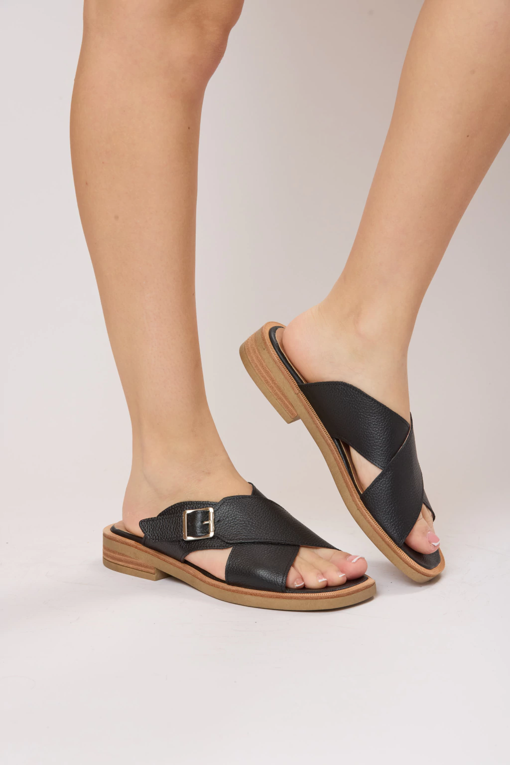 Confeccionada en cuero vacuno con tiras de 5 cm, se apoya en una base resistente y una plantilla acolchada que suman comodidad real. De 2 cm de altura y con solo 225 gramos, es liviana y fácil de usar en cualquier momento del día. La forrería antitranspirante aporta frescura para el verano.